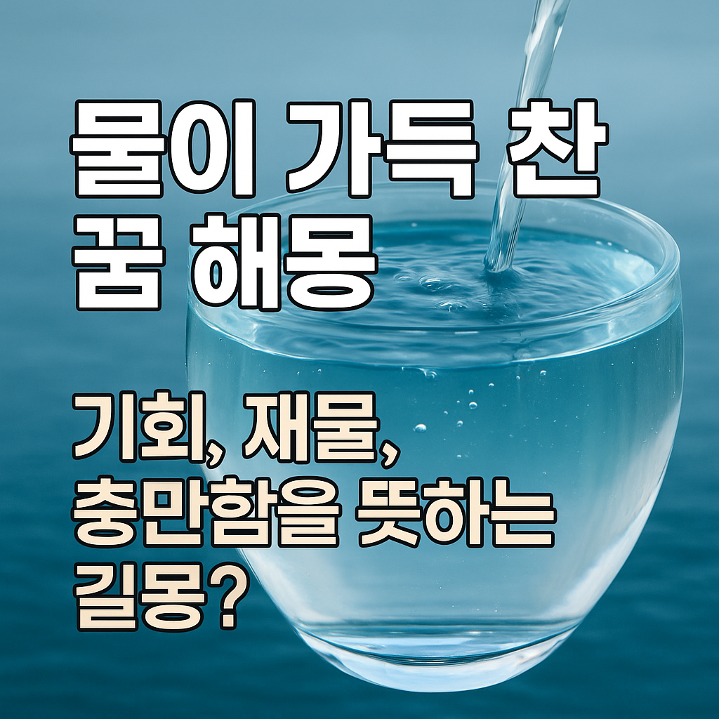 | 물탱크나 수조에 물이 넘칠 듯 가득함 | 계획한 일이 순조롭게 진행됨, 소망 실현 가능성 ↑ | ✅ 길몽 |