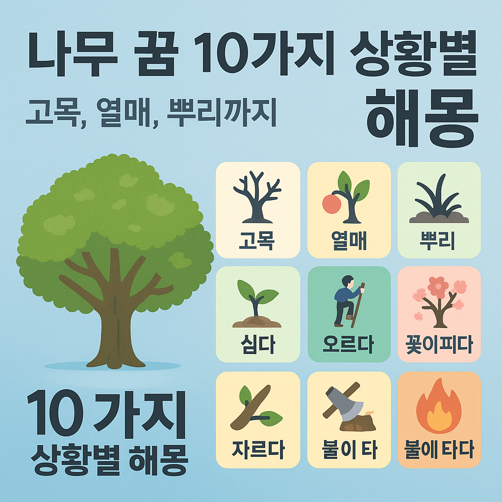 ‘나무 꿈’은 상징이 매우 풍부한 꿈입니다. 하나의 이미지라도 상황에 따라 그 의미는 천차만별이죠. 위에서 소개한 10가지 꿈 해몽을 참고하셔서, 여러분의 꿈이 전하는 메시지를 이해하고 현실에 긍정적으로 적용해보시기 바랍니다.