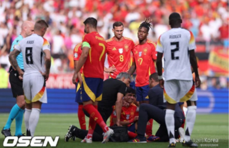 페드리는 저번유로에 스페인 대표팀에서 어린 나이에 주전 자리를 얻었지만 역시 어린나이다 보니 경기 시간 조절이 필요했으나 페드리가 절실히 필요한 대표팀은 페드리를 꾸준히 선발로 풀타임을 뛰게 혹사시켰고, 그렇게 페드리는 물 몸이 됩니다. 그렇게 안 그래도 몸싸움이 약한 페드리가 깊은 태클을 당해 바로 실려 나갔습니다. 하지만 그 태클에는 카드 한 장 나오지 않았다. 심지어 라이벌 팀 소속인 크로스를 페드리는 존경했으나 그런 태클이 나와서 아쉽게 느껴집니다. 페드리의 부상은 경기가 끝난 지금은 무릎 염좌로 상황이 공유가 되었습니다. 이로써 페드리의 유로 도전기는 막을 내리게 됩니다.
